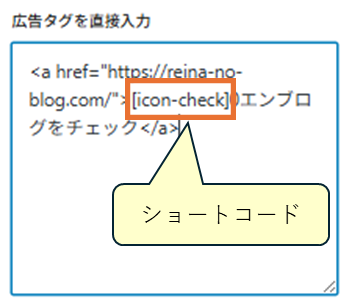 アフィリエイトリンクの広告タグを直接使用する場合、アイコンを挿入できません